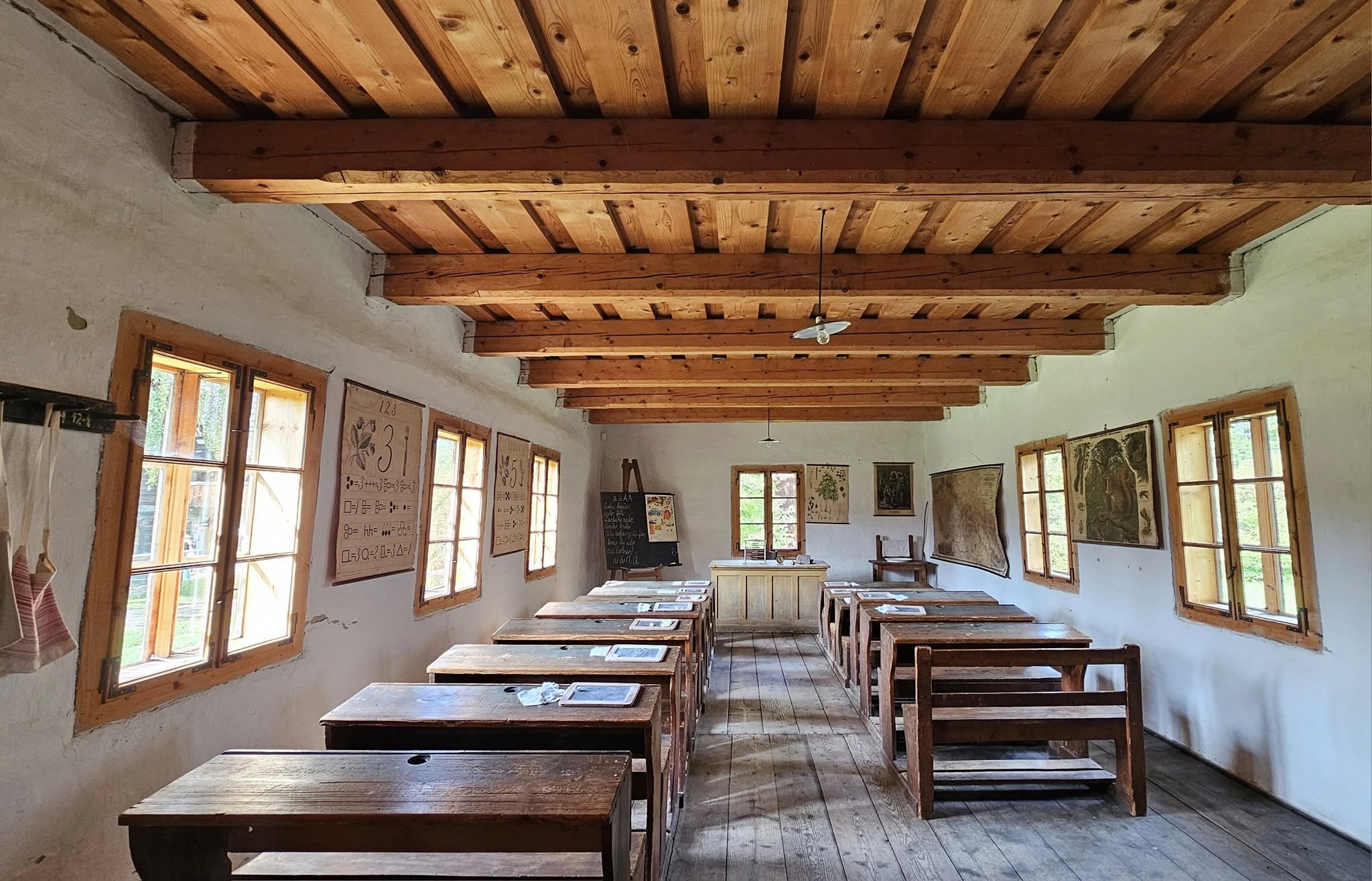 Skanzen pod hradom Ľubovňa! Stará školská trieda s bridlicovými písacími tabuľkami v jednom z objektov skanzenu!