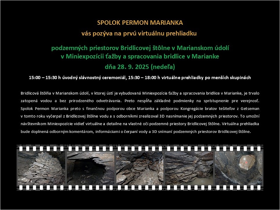 MINIEXPOZÍCIA BRIDLICE V MARIANKE – MALÝ PRIESTOR S VEĽKÝM PRÍBEHOM! Miniexpozícia bude najbližšie otvorená poslednýkrát v tomto roku v nedeľu 26.10.2025 od 15:00 do 18:00 h. Vstupné dobrovoľné. Tešíme sa na Vás!
